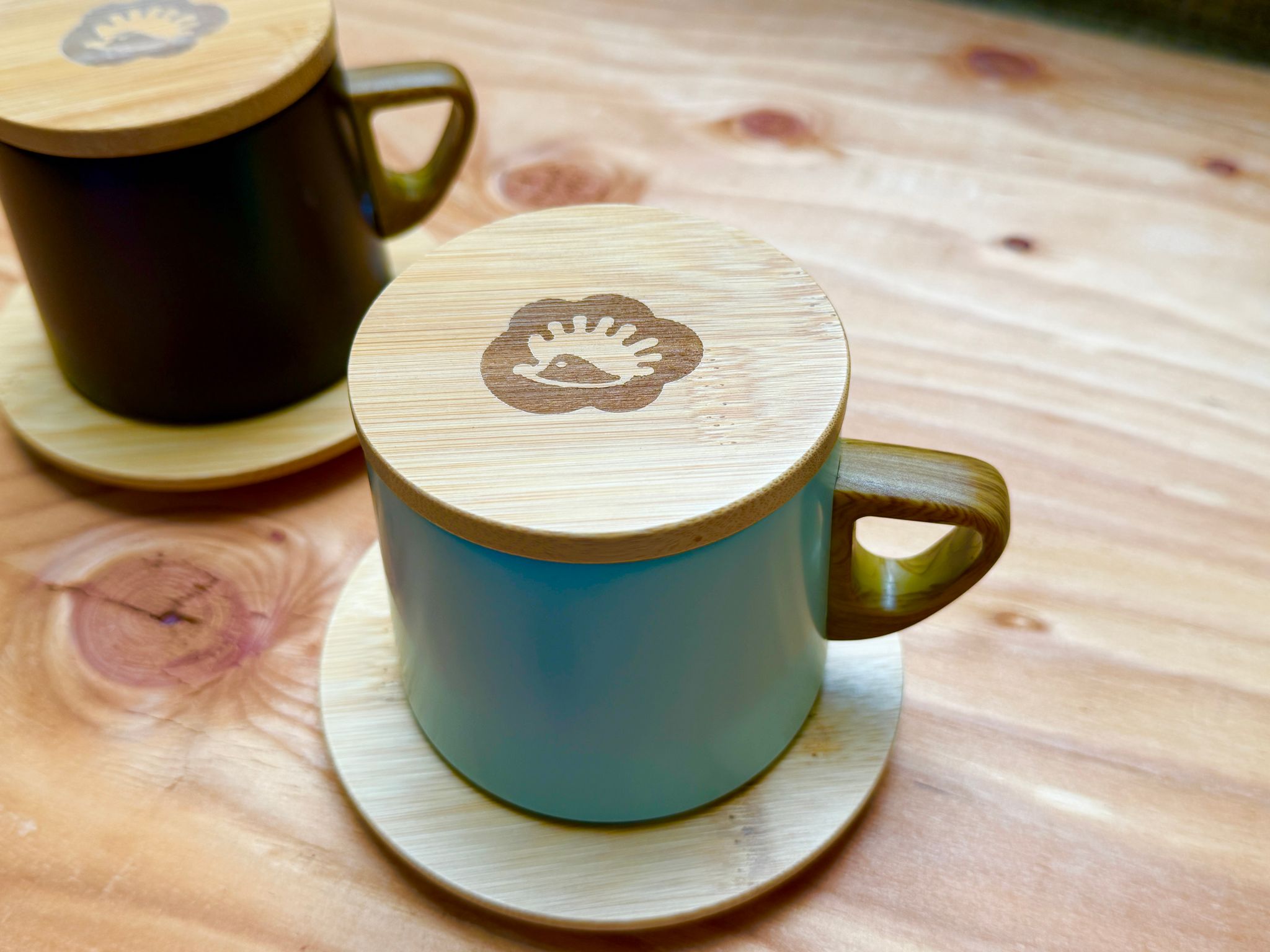 レーザー加工機でオリジナルのイラストや文字をカップの蓋やソーサーに彫刻して